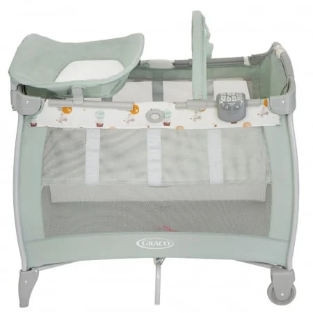 Patutul Graco Contour Electra Up & Away vine echipat cu un etaj superior detasabil, conceput pentru a oferi bebelușului confortul necesar încă din primele sale luni de viață. Etajul superior poate fi utilizat până la aproximativ 6 luni (9 kg), fiind perfect pentru părinți, datorită înălțimii optime care facilitează accesul ușor la bebeluș.