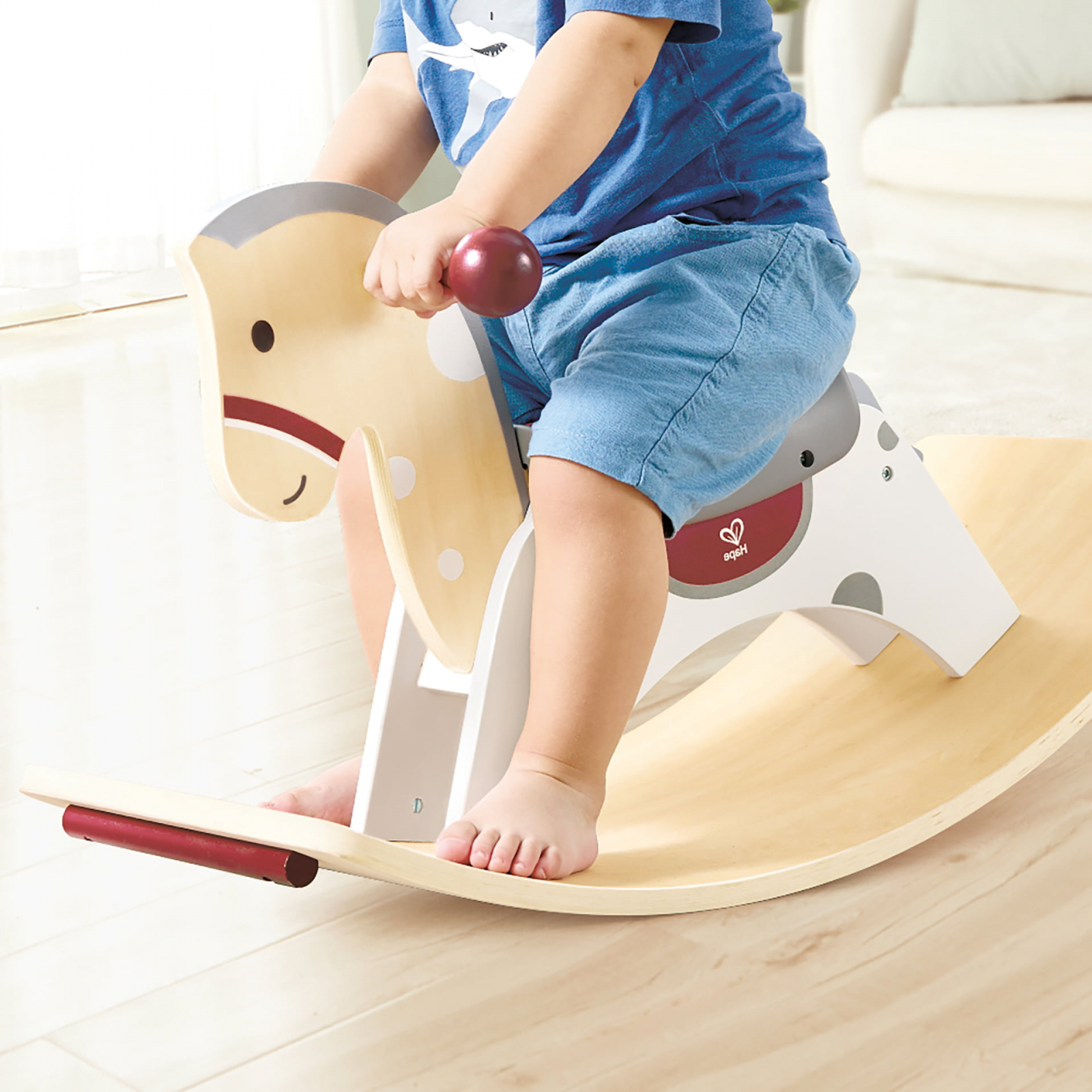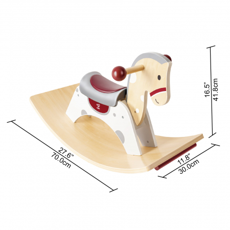 Lemnul durabil, in culori moi, potrivite, este rezistent si construit sa reziste. Bebelusul sau micutul tau va calari intr-o furtuna, iar jucaria se poate descurca!