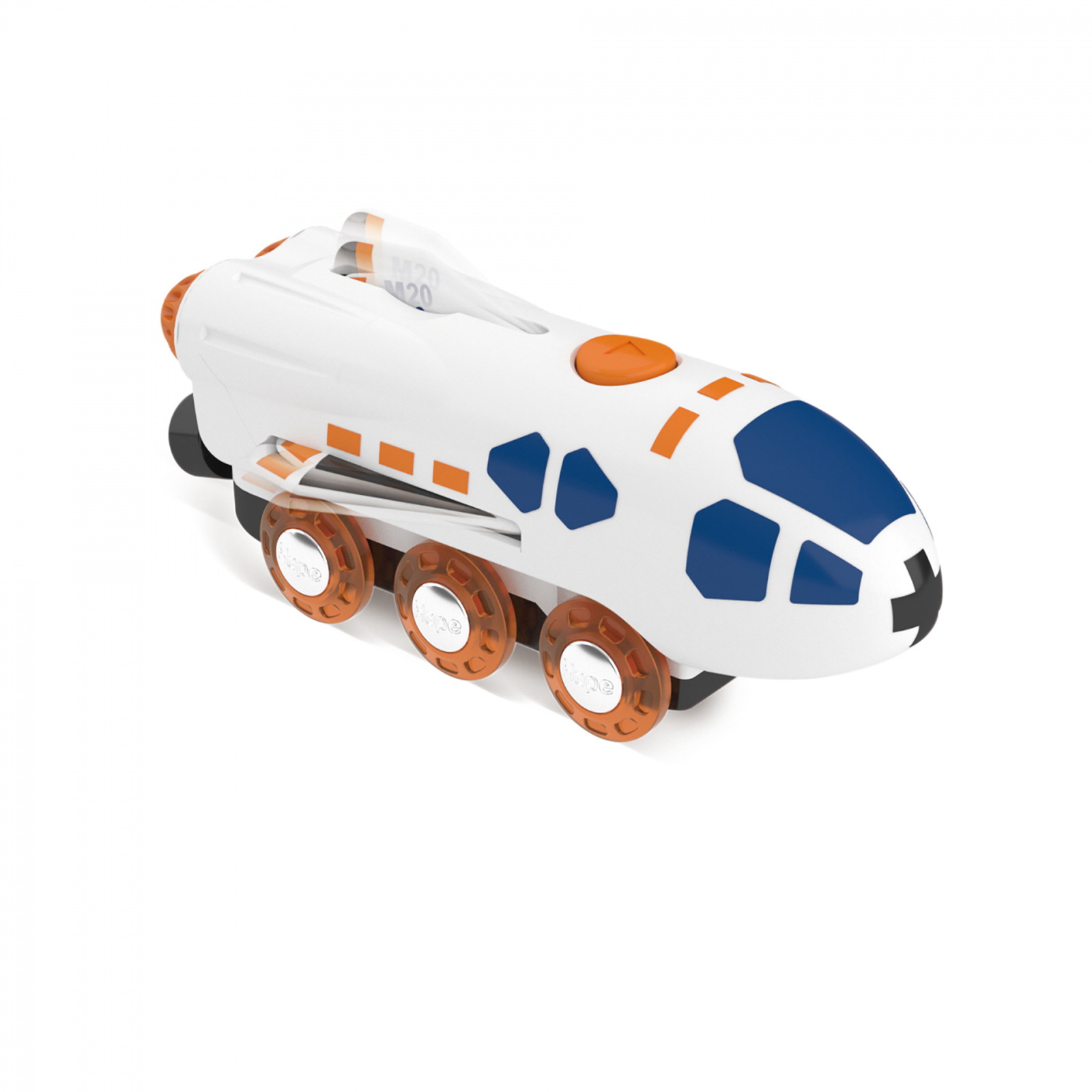 Porneste intr-o aventura galactica cu jucaria noastra unica cu naveta. Apasati butonul din partea de sus pentru a urmari aripile derulandu-se, transformandu-l intr-o naveta spatiala maiestuoasa. Lasa-ti imaginatia sa se inalte in spatiul cosmic in timp ce explorezi terenul lui Marte pe piste.
