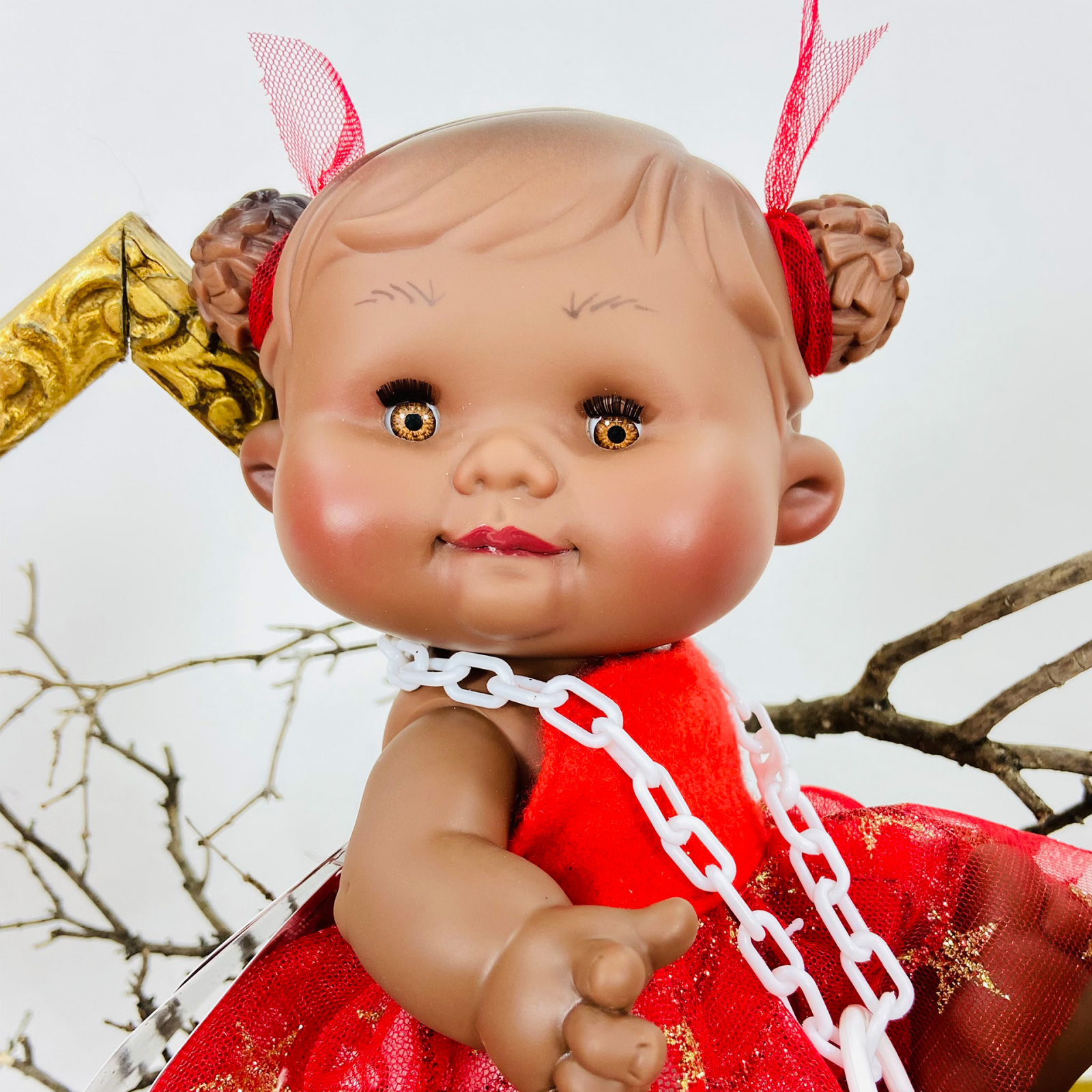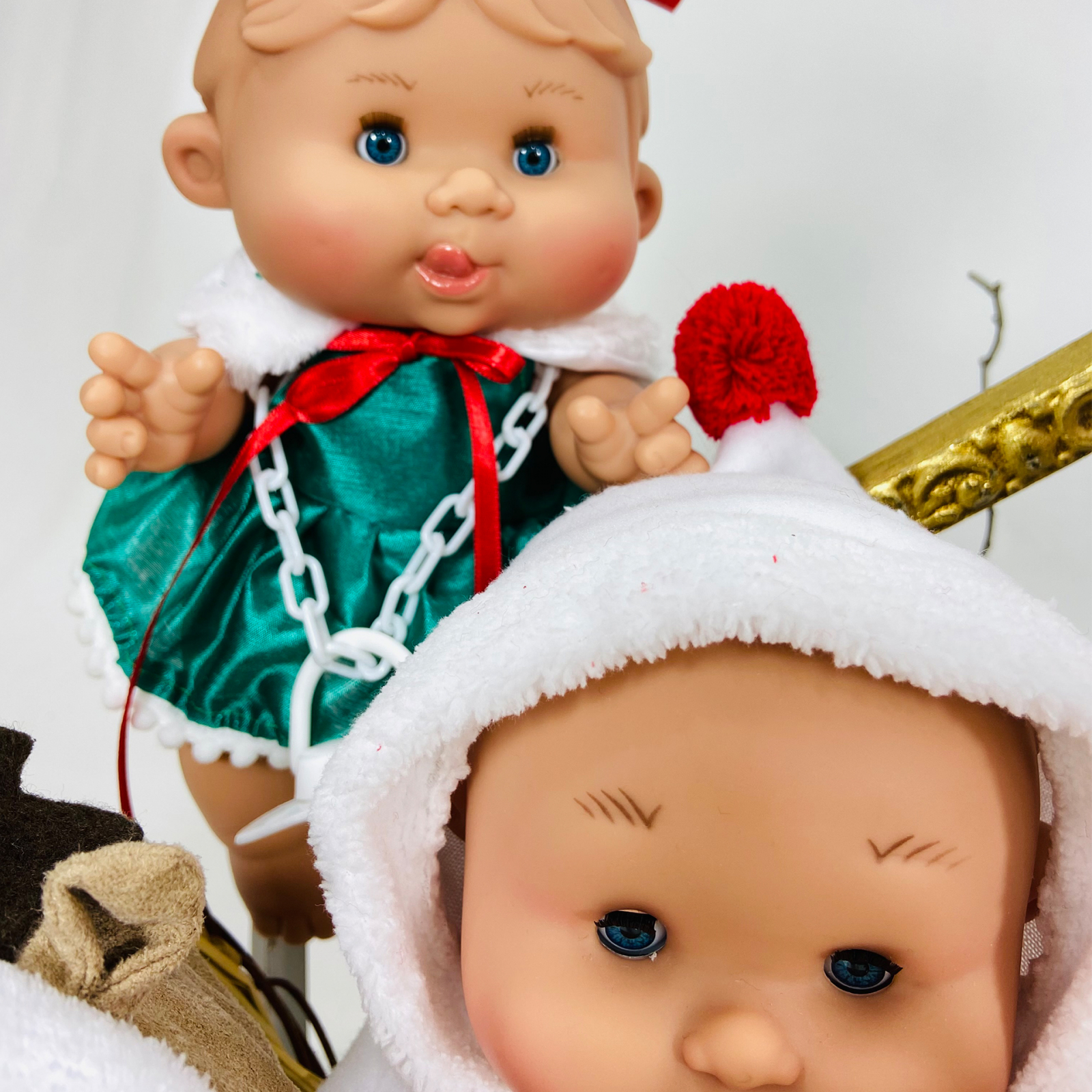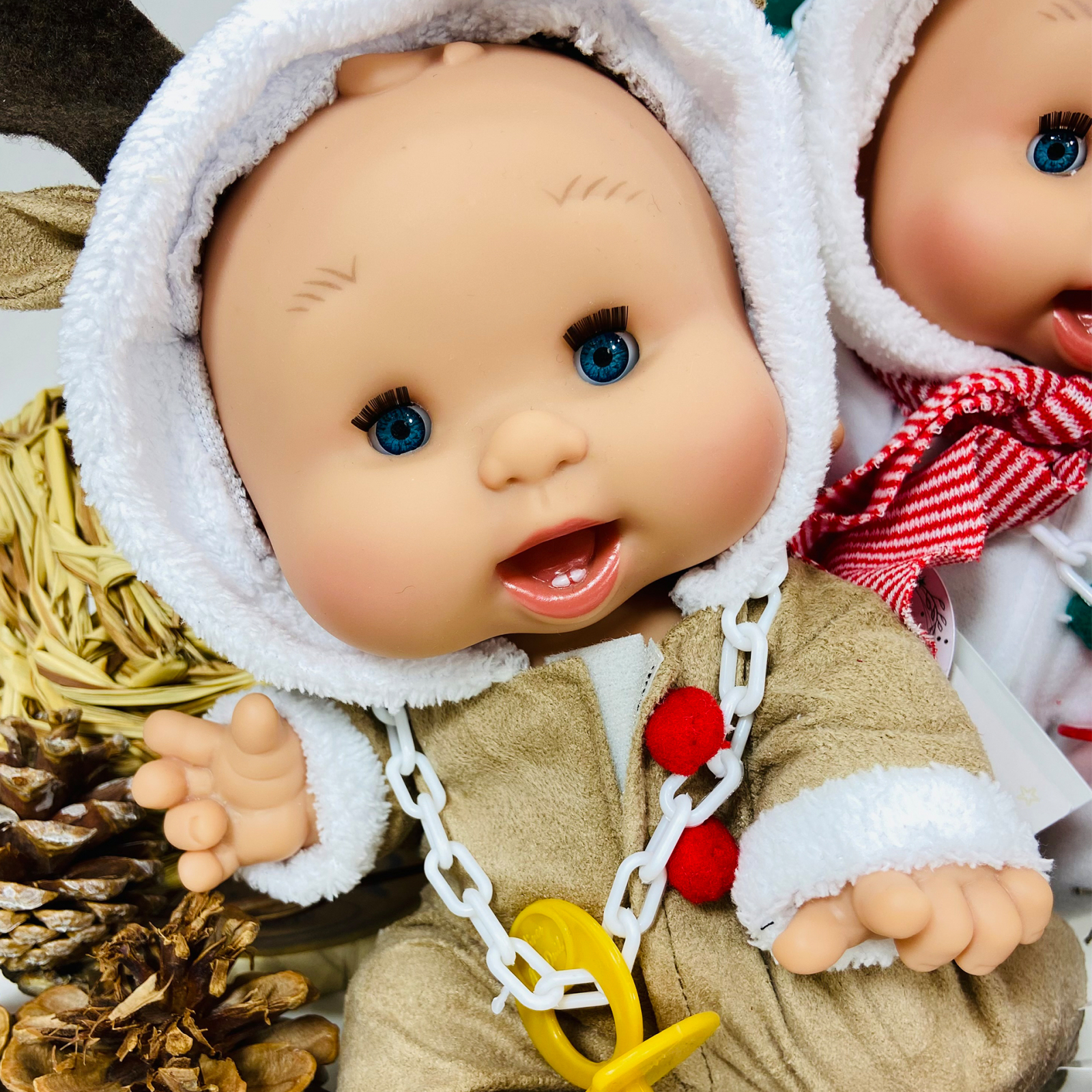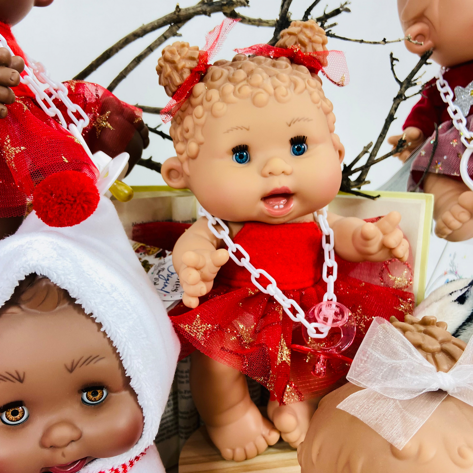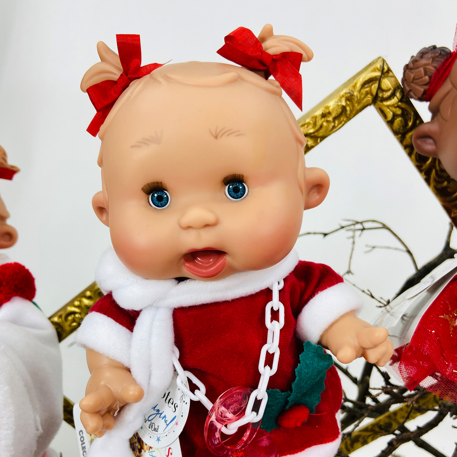 Papusa Nines D'Onil, Colectia Pepote Craciun, cu miros de vanilie, 26 cm Papusile din colectia Pepote Craciun sunt papusile pe care le vei iubi pentru fetele lor amuzante. Ca si caracteristici ale acestor papusi dragute sunt rochiile haioase, sunt de gen (baiat/fata) si se pot spala. Au un miros usor de vanilie. Ca valoare educativa, acest tip de papusi favorizeaza jocul simbolic: valoarea afectiva si exprimarea sentimentului, stimuland in acelasi timp limbajul, imaginatia si autosuficienta. Jocul cu aceasta jucarie le permite fetelor si baietilor sa aiba grija de micutul lor la fel ca si parintii lor. Dimensiune: 26 cm. Papusile Nines D'Onil au sigiliul de artizanat, Craftsmanship Seal, al Comunitatii Valenciane si sigiliul de origine, Origin Seal, care acrediteaza traditia, autenticitatea, calitatea si exclusivitatea papusilor. Din 2020, Nines D'Onil, face parte din Spanish Association of Early Childhood Products – ASEPRI, care recunoaste brandul ca fiind 100% spaniol. Va rugam sa alegeti modelul dorit.