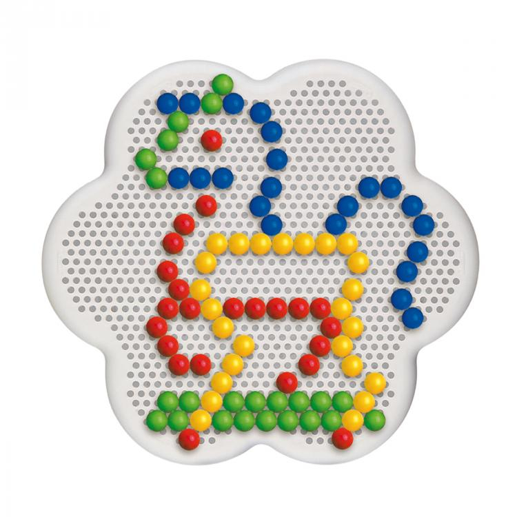 Crearea mozaicurilor este o activitate distractiva, creativa si educativa care incurajeaza recunoasterea culorilor si imbunatateste abilitatile manuale.' Prin inserarea pieselor peg in baza perforata in forma de margareta,' copii se vor amuza inventand propriile modele de mozaic, sau copiindu-le pe cele din albumul jocului.' Toate piesele au margini rotunde si sunt realizate din plastic flexibil de inalta calitate, sunt lavabile, un joc sigur pentru copii.