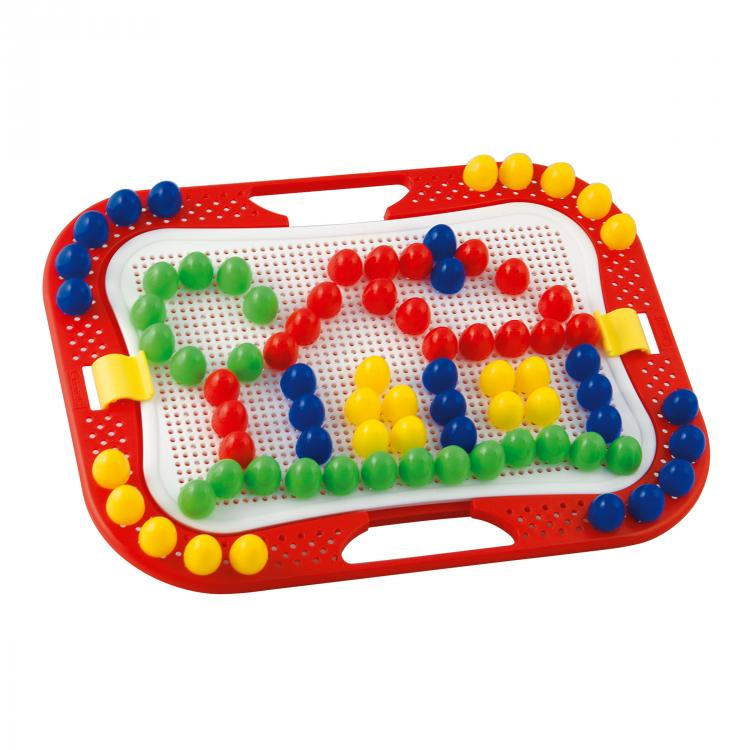 Cu ajutorul acestui joc poti crea mozaicuri minunate!' Copii se vor amuza inventand propriile modele de mozaic, sau copiindu-le pe cele din albumul jocului. Rama exterioara a noului joc din gama FantaColor Design are margini rotunjite si orificii in care se pot insera piesele peg pentru a avea spatiu pentru si mai multa creativitate. Jocurile mozaic tip Fantacolor Design fac din aceasta gama una din cele mai reusite de pe piata in privinta inventivitatii, sigurantei si creativitatii.