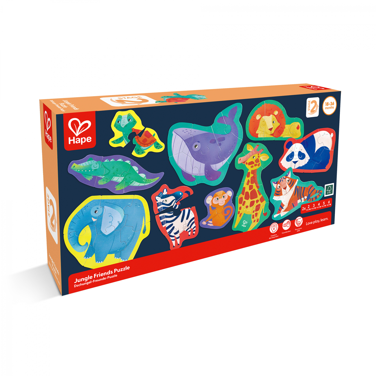 Pe masura ce maestrul tau de puzzle lucreaza la puzzle, incurajeaza-i sa numeasca animalele din jungla pe care le intalnesc. De asemenea, puteti face sunetele fiecarui animal pentru a face timpul de joaca mai interactiv si mai antrenant.
