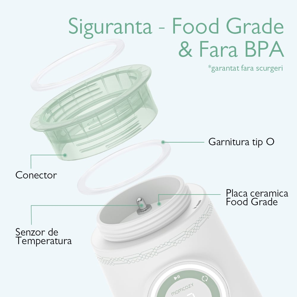 Datorită designului etanș, ușor de curățat, și a controlului precis al temperaturii, Momcozy simplifică rutina de hrănire acasă, la birou, în călătorii și în orice deplasare.